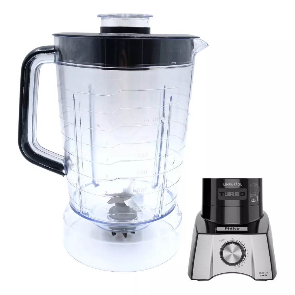 Copo Liquidificador Philco Plq 1550 Turbo Translucido Tampa Preta