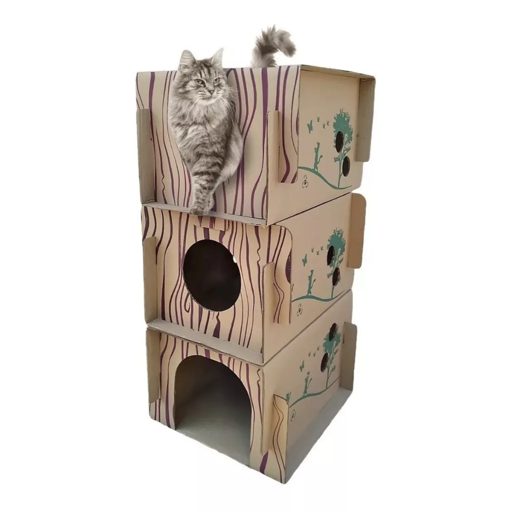 Toca, Cama E Casinha De Papelão Pets 3 Andares Para Gatos