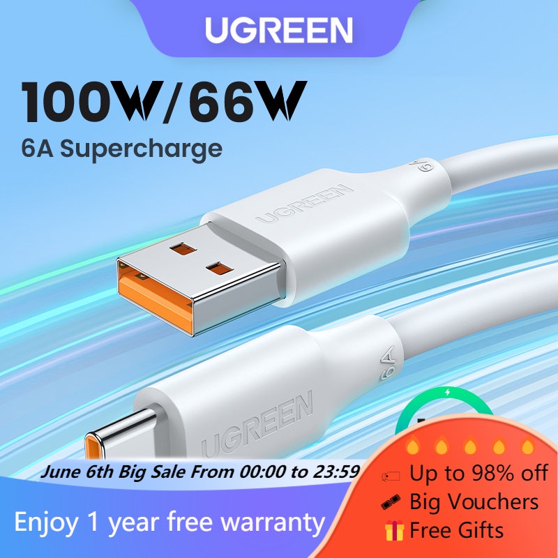 Cabo De Dados UGREEN 100W USB Tipo C 6A Para Huawei Honor 66W Carregador Rápido Xiaomi Super Carga