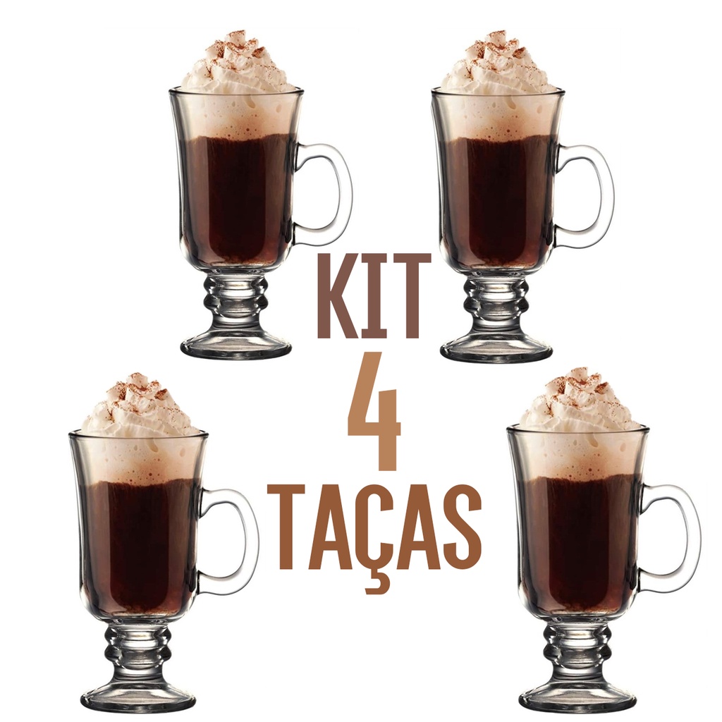 Kit 4 Taças Vidro Xícara Tipo Dolce Gusto Café Capuccino 230 Ml