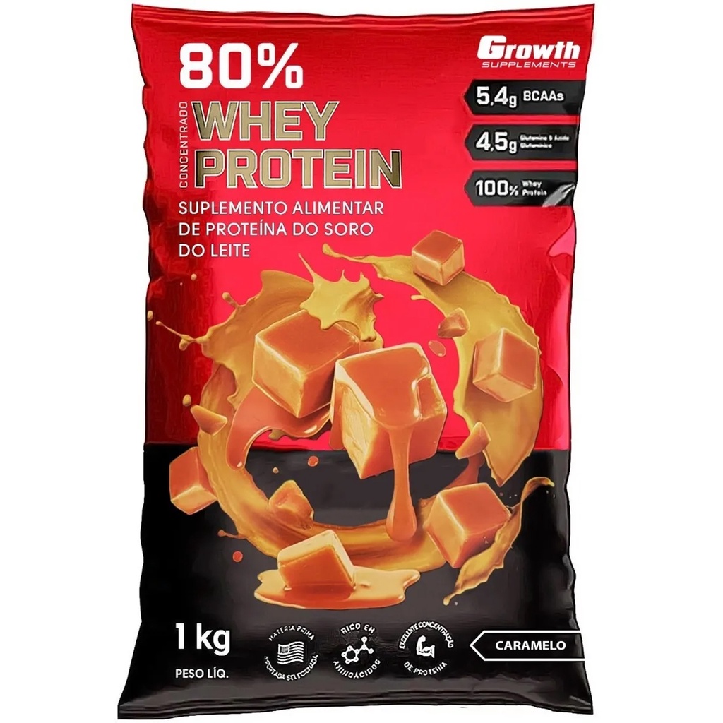 Whey Protein Caramelo 80% Proteína Concentrado 1Kg Growth Suplementos Original