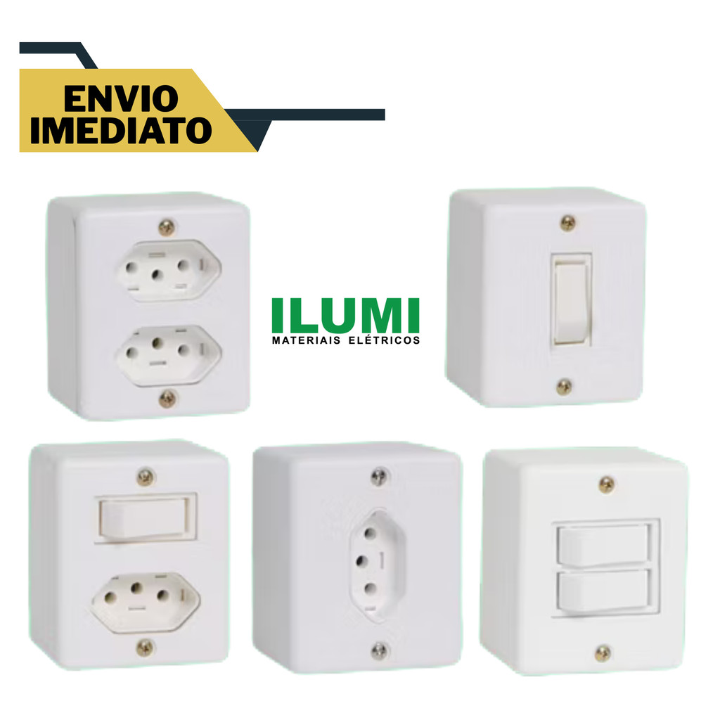 Tomada Interrupetor Sobrepor Ilumi 10A - 20A - 2P+T Simples Branca Dupla Interna Externa