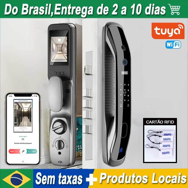 Nova Fechadura Biométrica De Impressão Digital De Segurança Smart Door Lock Senha Fechaduras Eletrônicas Chave Cartão IC Desbloqueio APP Câmera Eletrônica