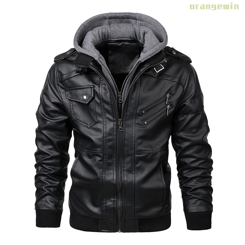 Jaqueta de couro Masculina Com Capuz Aveludada