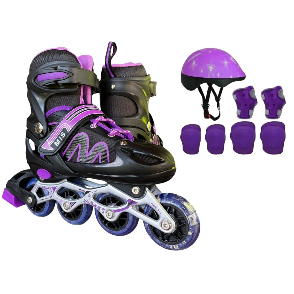 Patins Inline Roller Ajustavel Semi Profissional + Led Tam. 28-32 / 33-36 / 37-40 + KIT PROTEÇÃO