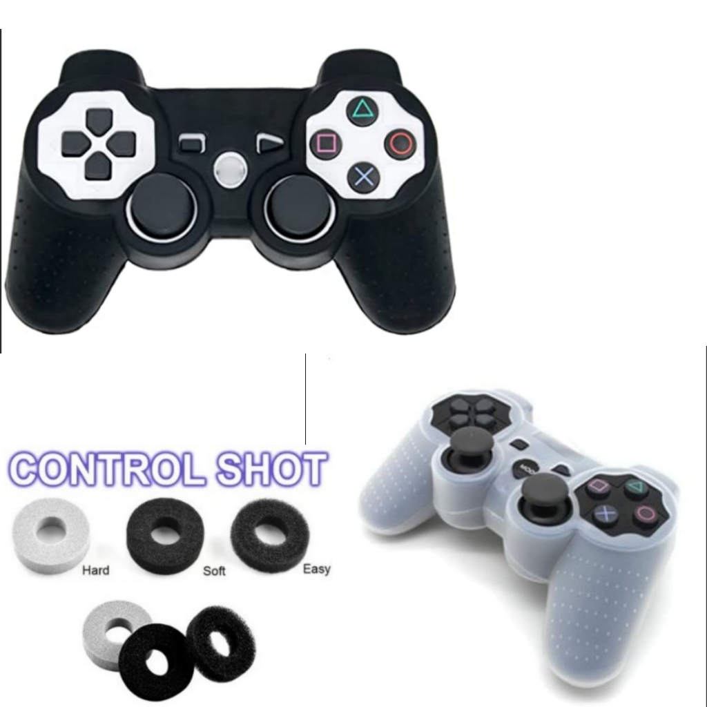 kit 2 Capas De Silicone Antiderrapante Para Playstation Ps3 Controle Preto e Azul + Kit Control Shot
