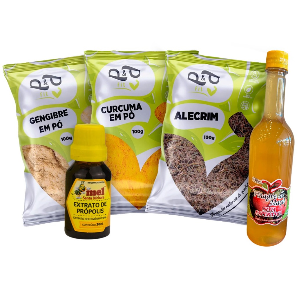 KIT Vinagre de Maçã, Alecrim, Cúrcuma, Gengibre em Pó e Extrato de Própolis