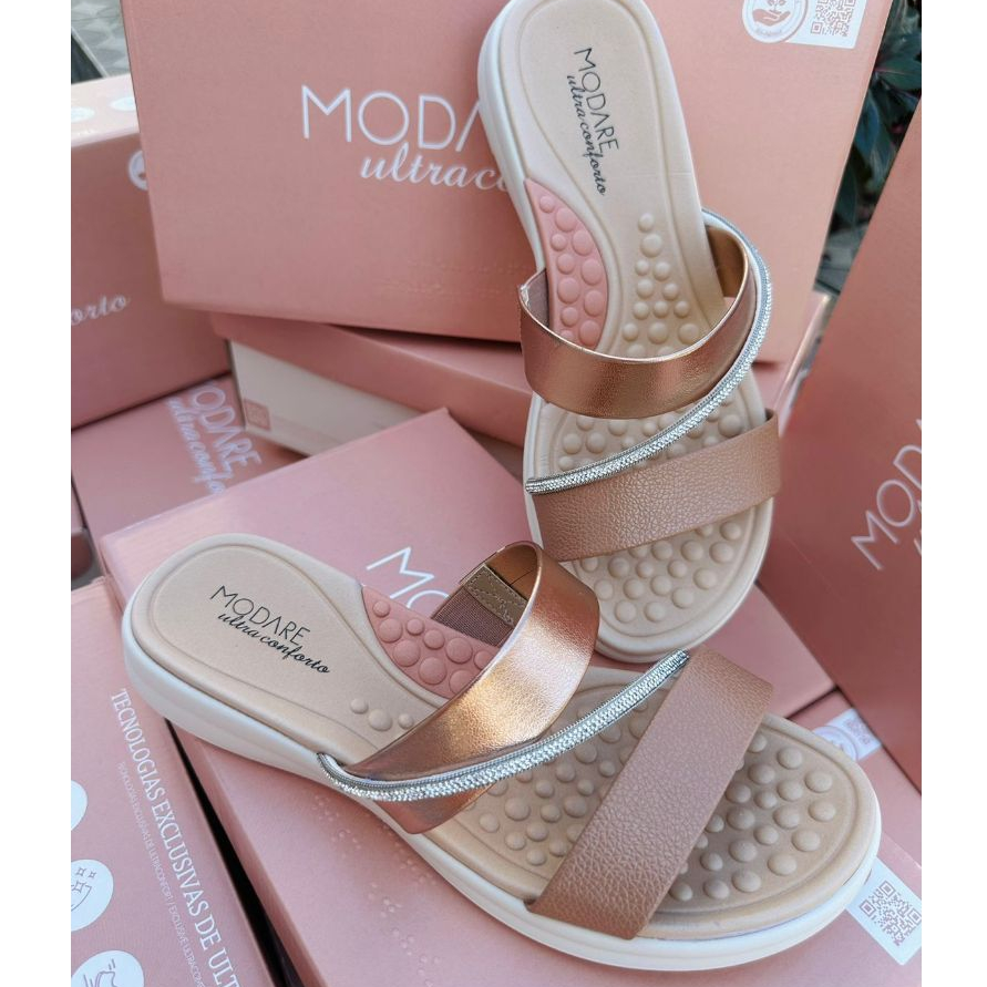 Sandália Feminina Tamanco Rasteira Modare Strass Ortopédica Esporão Ultraconforto