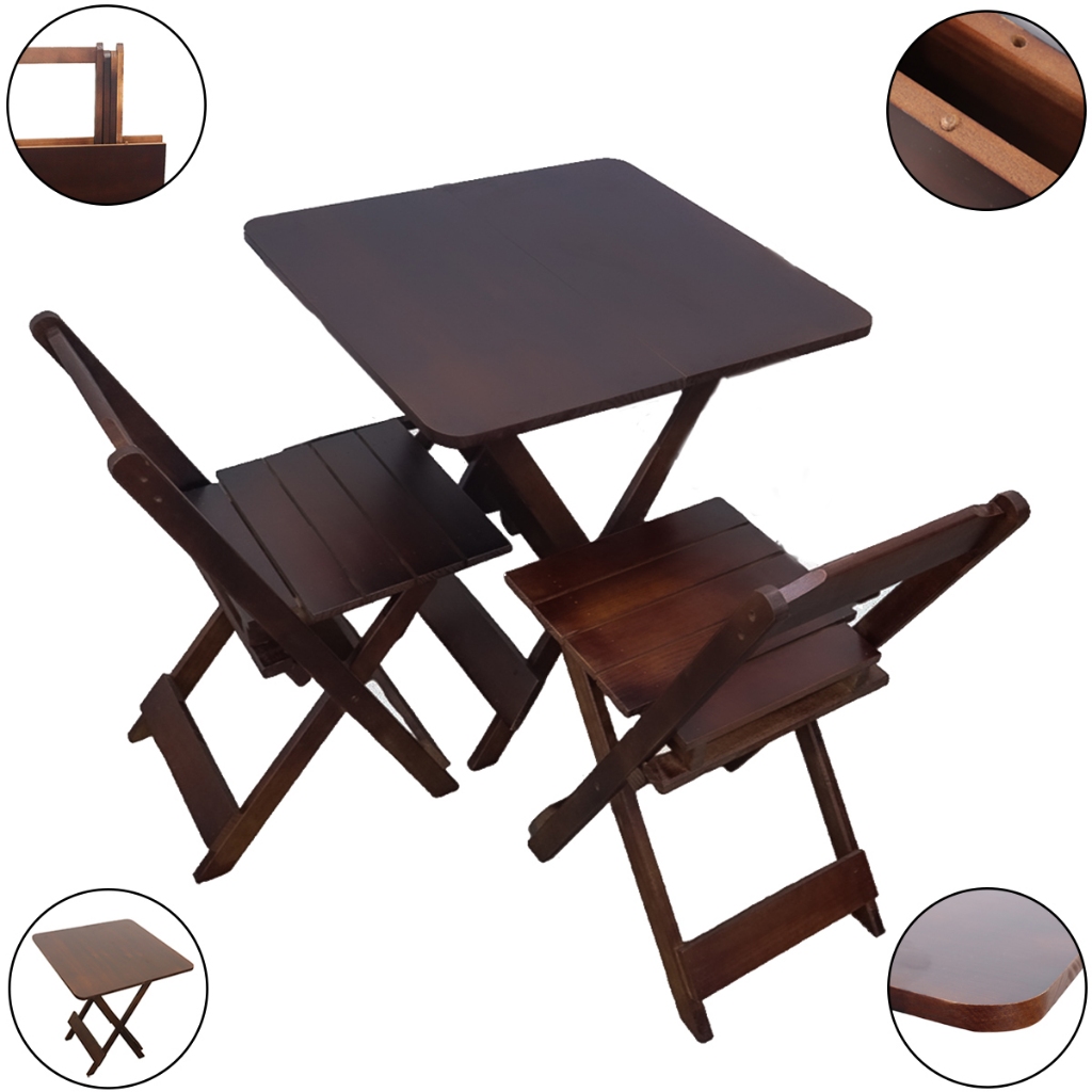 Jogo De Mesa Dobrável 70x70 C/ 2 Cadeiras Madeira Maciça