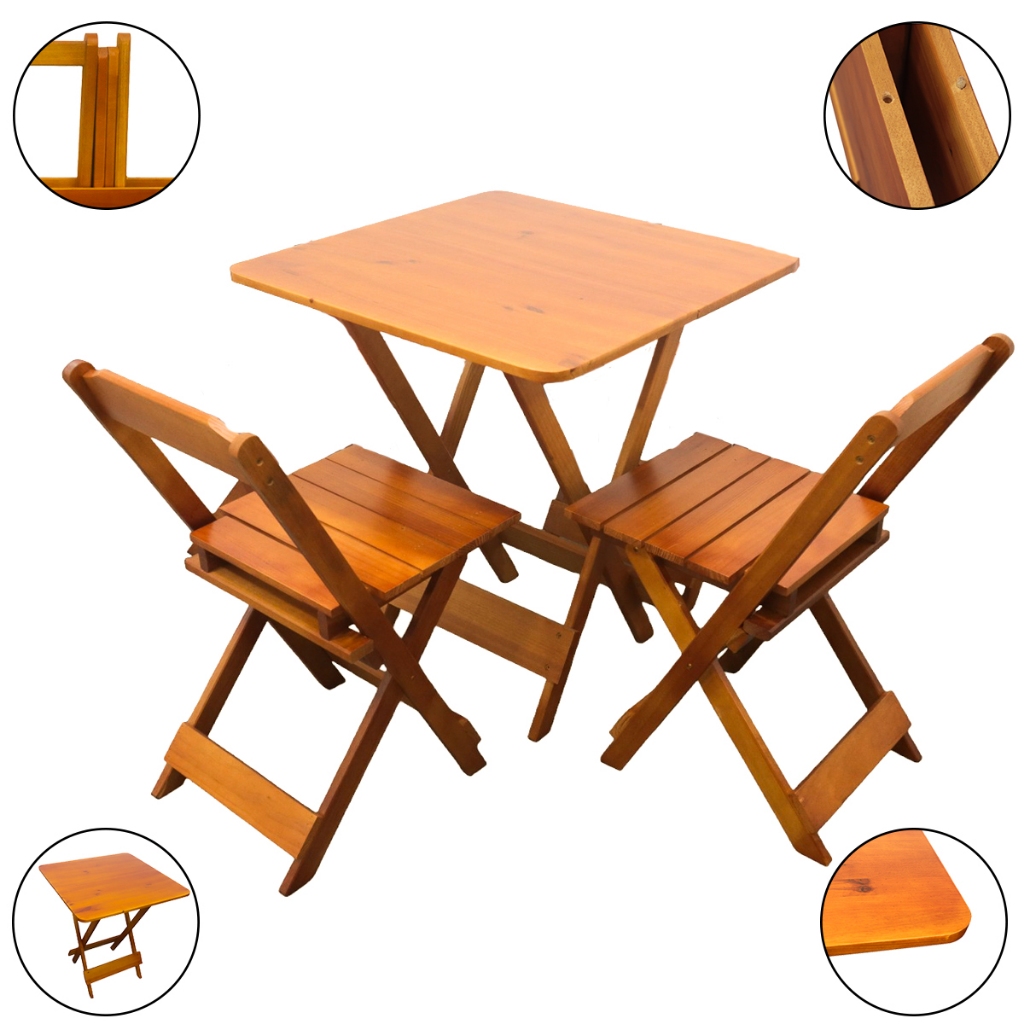 Jogo de Mesa Dobravel com 2 Cadeiras de Madeira 70x70 Ideal para Bar e Restaurante - Mel