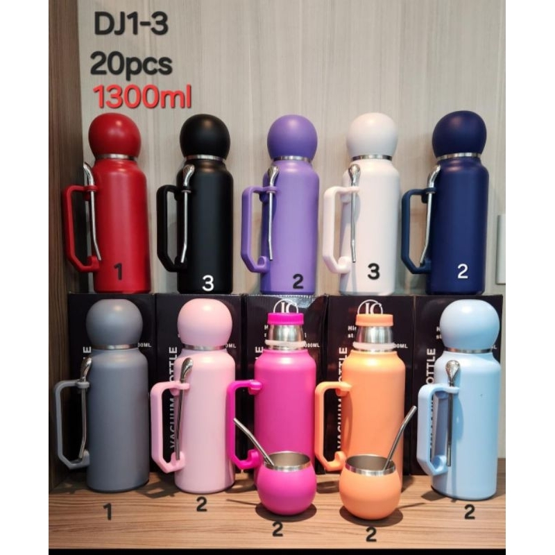 kit Garrafa térmica 1300ml inox tereré chimarrão cuia e bomba ml