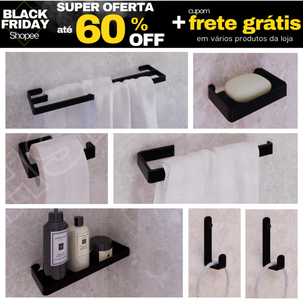 Kit Suporte Acessórios para Banheiro Porta Shampoo Toalha Papel 7 peças