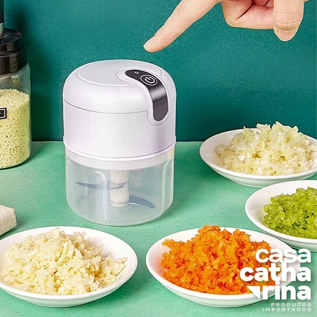 Mini Processador de Alimentos 250ml Moedor Alho Elétrico Sem Fio Recarregável USB