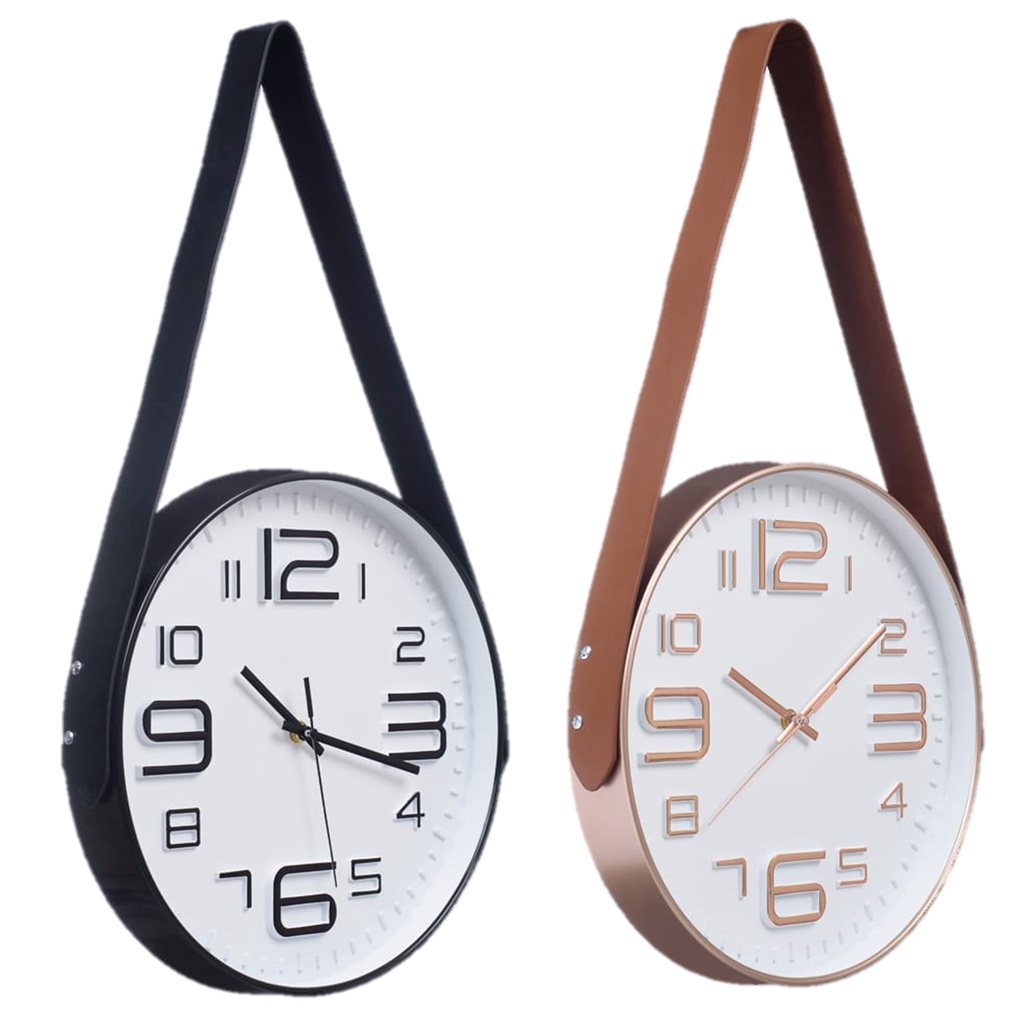 Relogio De Parede Adnet Com Alça Decorativo Couro Grande 30 Cm