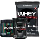 Combo de Suplementos Whey Protein Turbo 907g + Pré Treino B.O.P.E. + Creatina Turbo - Black Skull