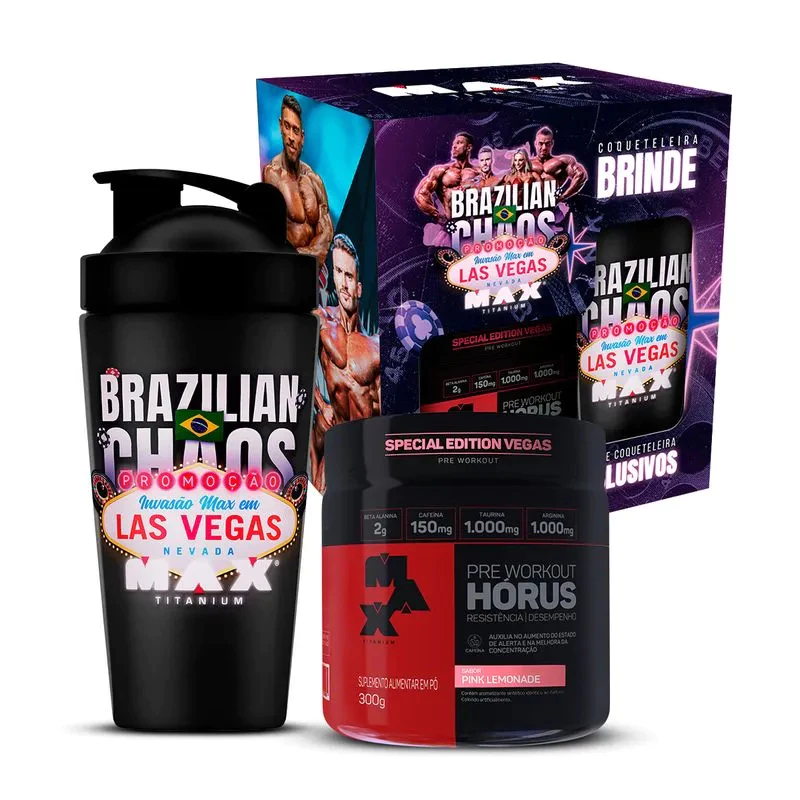 Combo Pré Treino Hórus 300g + Coqueteleira Max Titanium Brazilian Chaos