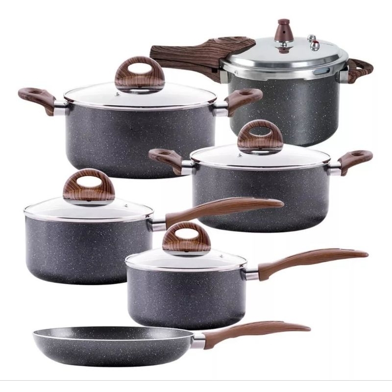Jogo de Panelas de Indução Com Panela de Pressão Ceramic Life Granito 6 Peças - Brinox