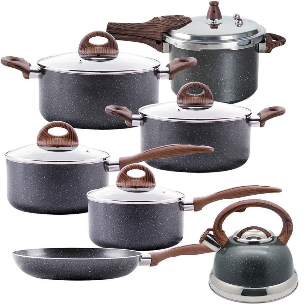 Jogo de Panelas de Indução Com Panela de Pressão Ceramic Life Granito 8 Peças - Brinox