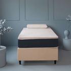 Cama Box Solteiro com Colchão Mola Ensacada Guldi Macio e 1 Travesseiro Guldi Nasa Viscoelástico Natural, Azul e Branco