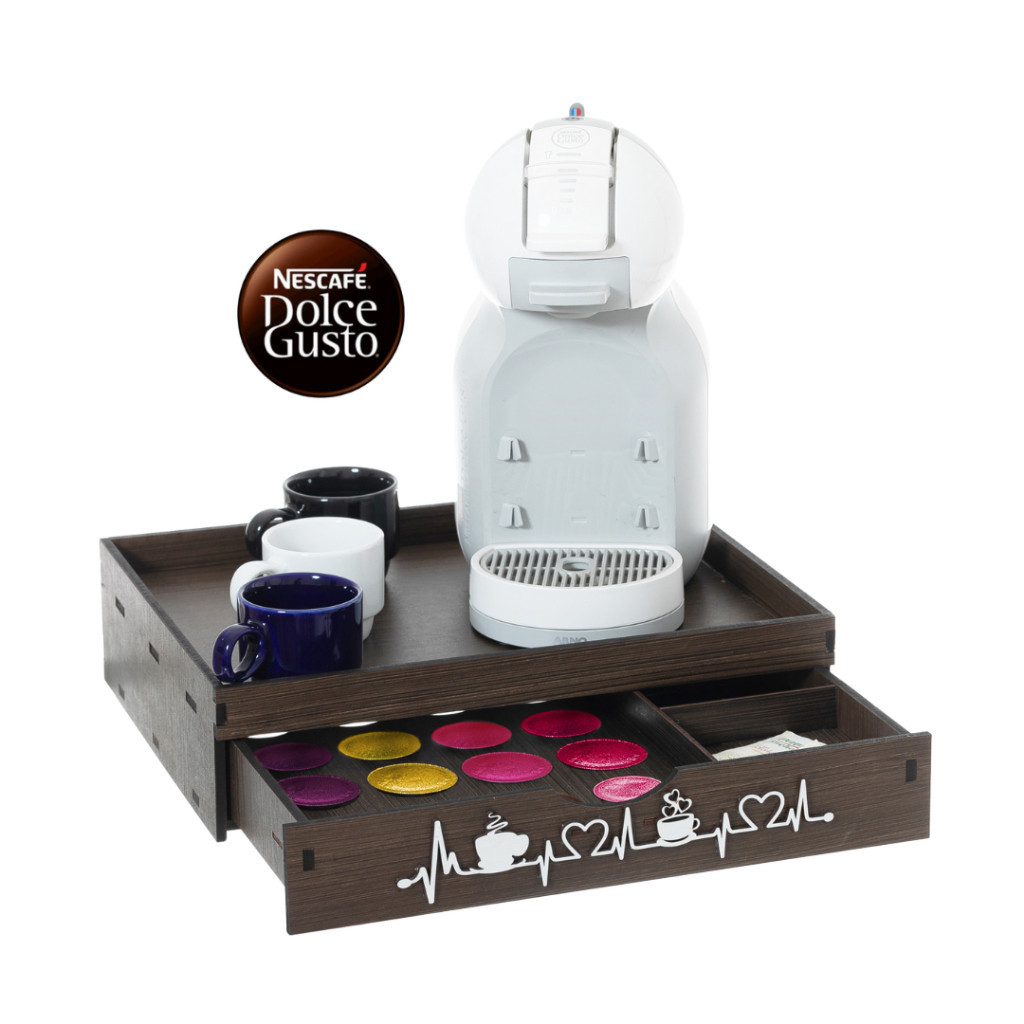 Bandeja Mdf Dolce Gusto Com Gaveta Porta Capsulas e Apoio de Cafeteira Potes Xicaras Cantinho do Café Cha Apoio
