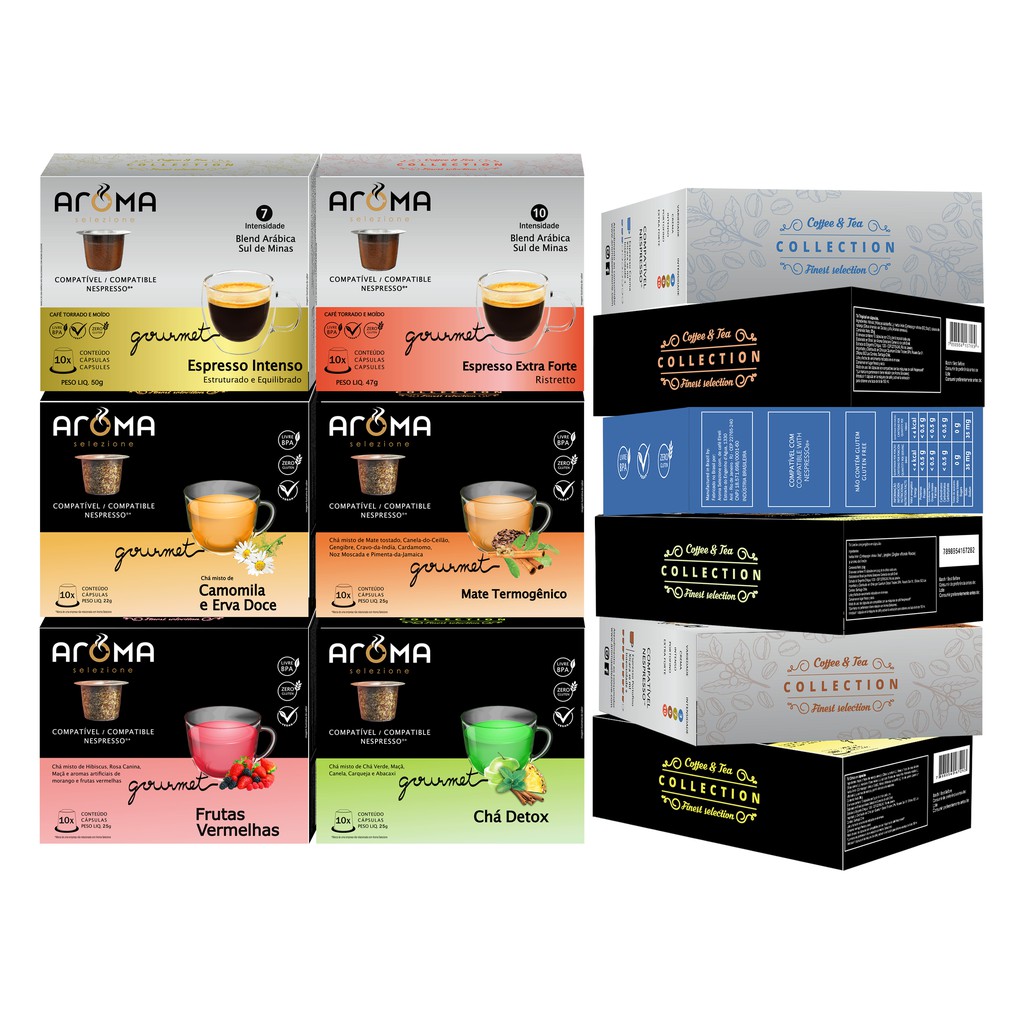 120 Cápsulas Nespresso* Café Chá Aroma Selezione - kit Personalizado