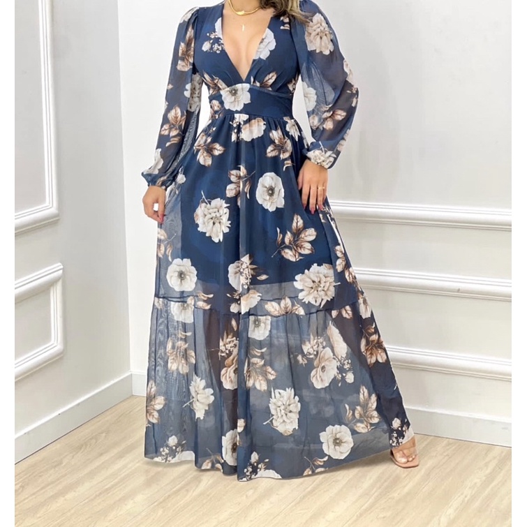 LANÇAMENTO Vestido em Tule Manga Longa Estampado Bojo para Festa Casamento Formatura Chá Revelação