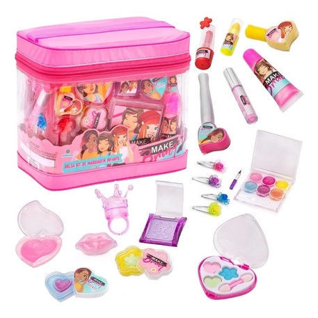 Maquiagem Infantil Com Bolsa Batom Anel Gloss Sombra Presilhas Anvisa Polibrinq