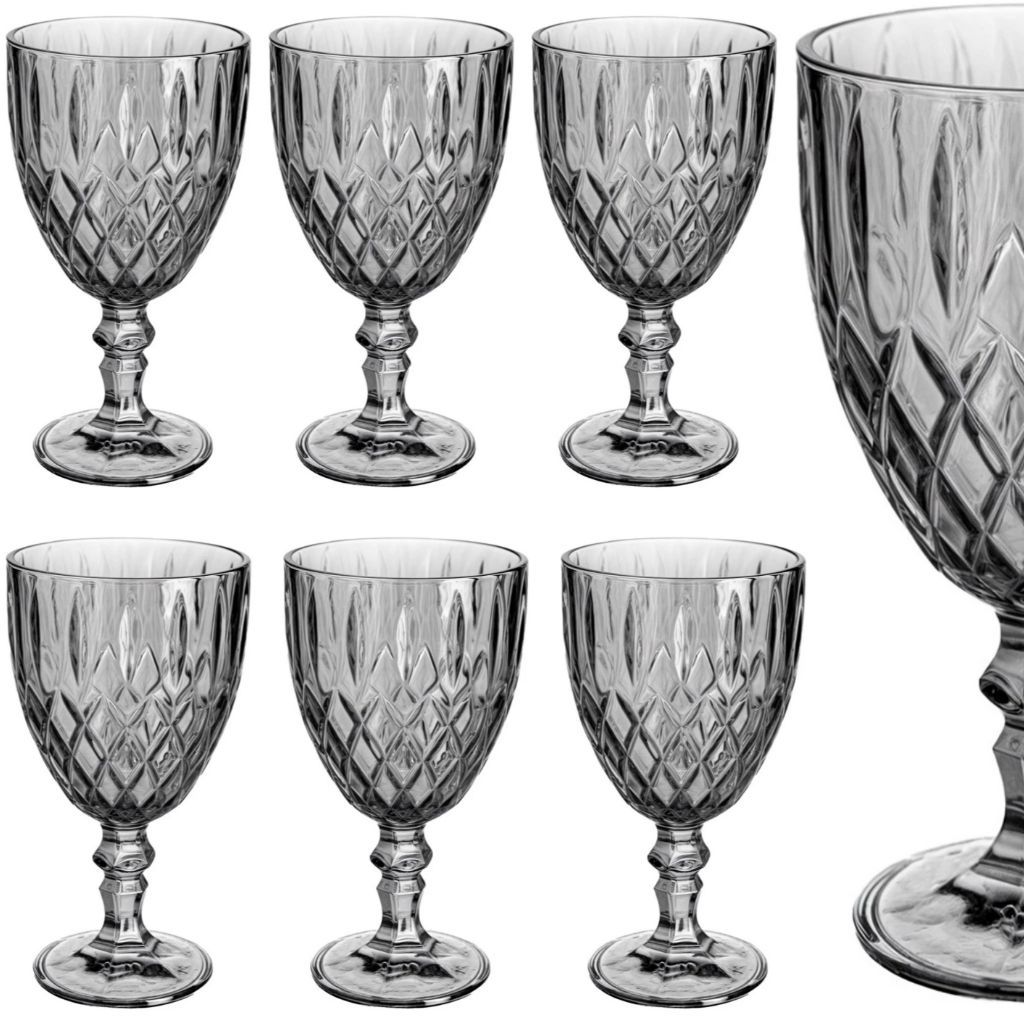 Jogo de 6 Taças Vidro Diamond FUMÊ/CINZA Agua Suco Vinho Copo Diamond Luxo 340ml