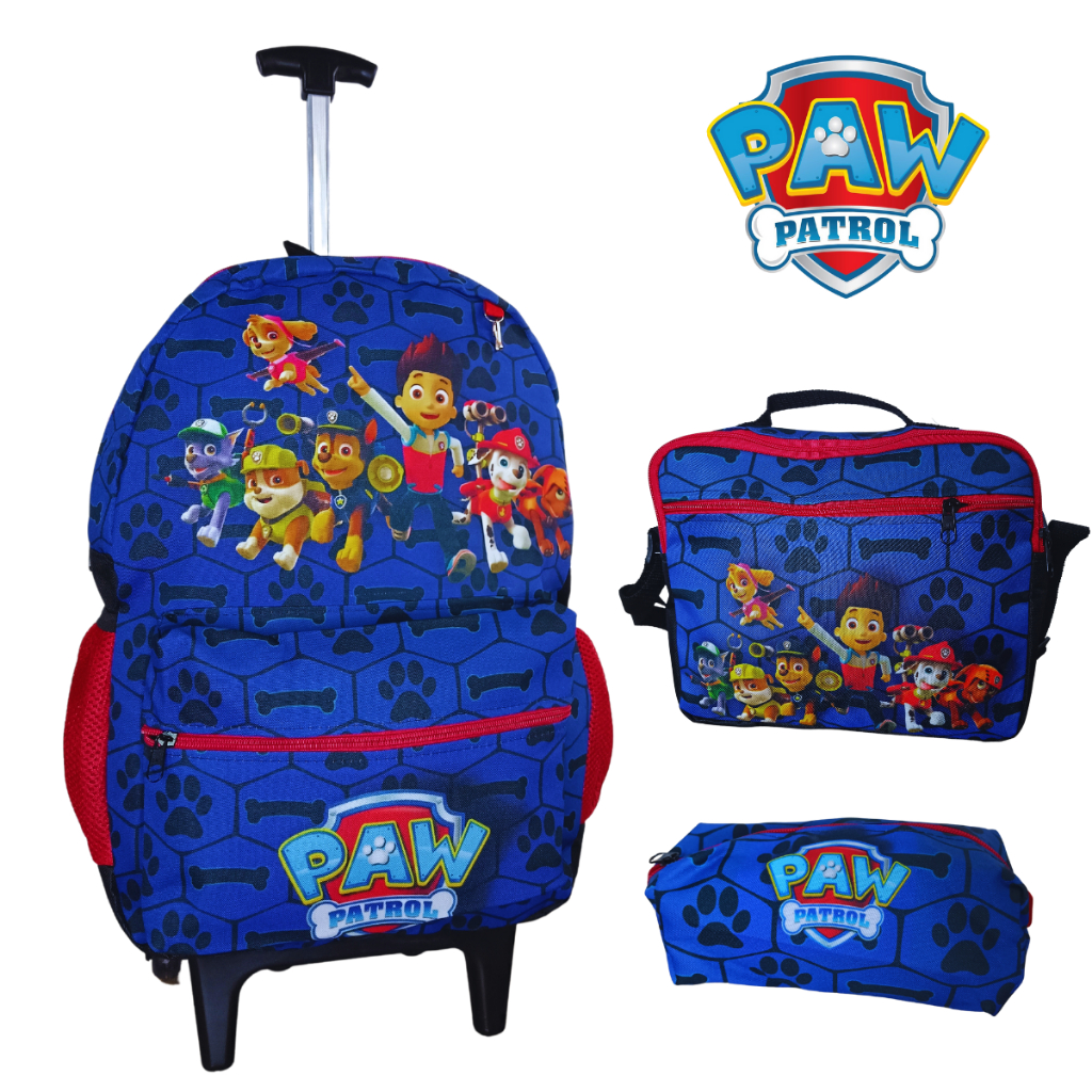 Mochila Escolar Patrulha Canina Cachorro De Rodinhas Menino | Kit Mochila de Três Peças| Lancheira + Estojo|