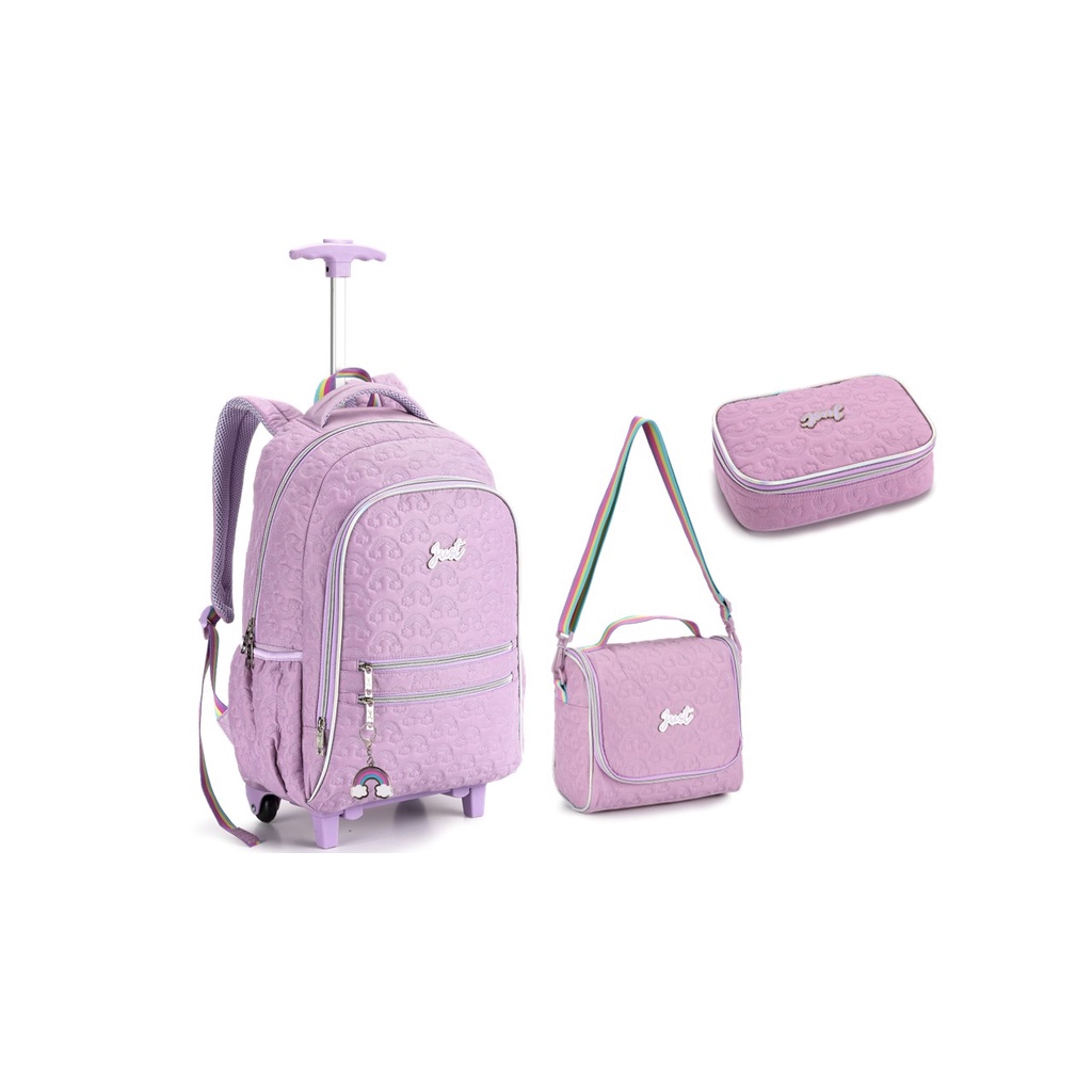 Mochila de Rodas e Costas Kit Meninas Lilás + Lancheira
