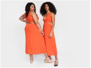Vestido Vista Magalu Midi Evasê Fenda Cintura Decote Anel
