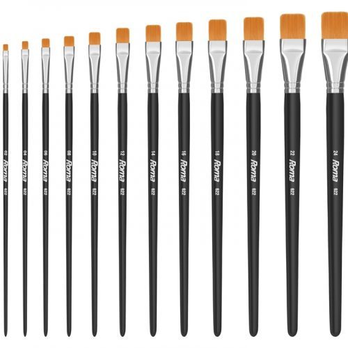 Kit Pinceis 622 Roma Pincel de cerdas sintéticas extrafinas e Ponta plana 02,04,06,08,10,18,20,22,24
