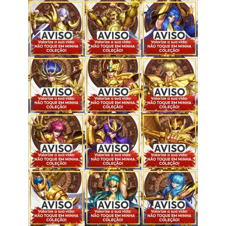 Placa em PVC no tamanho de 14x14cm - AVISO - NAO TOQUE EM MINHA COLEÇÃO - Saint Seiya - Cloth myth
