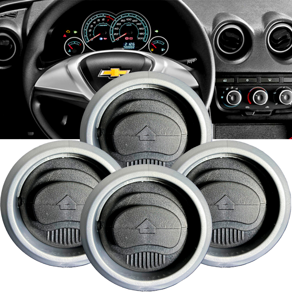 Kit com 4 Difusores de Ar Condicionado GM Celta Cor Preto Com Aro Prata 2001 02 03 04 05 2006