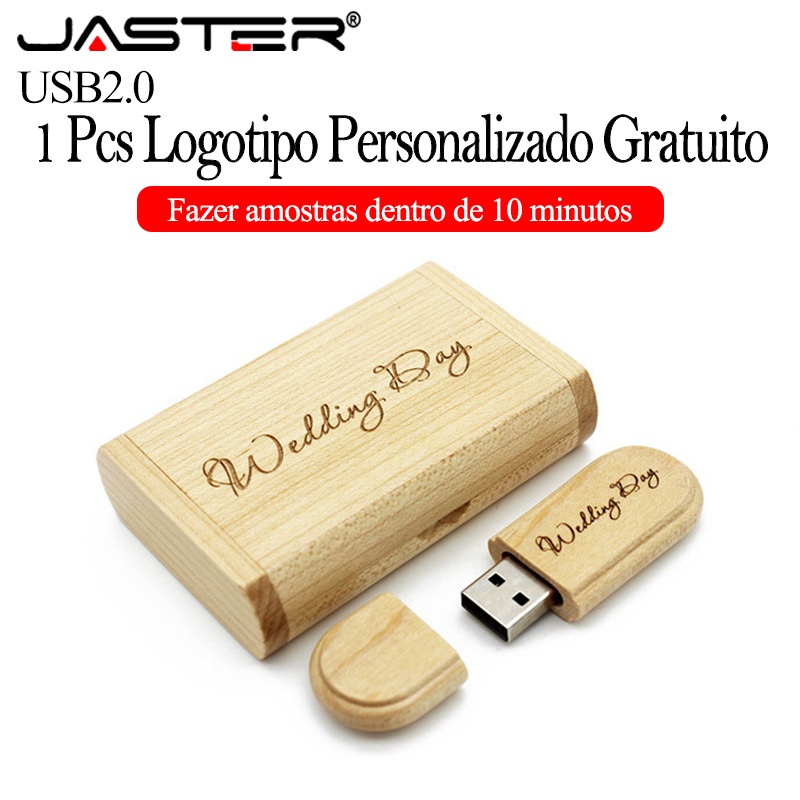 JASTER (Logotipo Personalizado Gratuito) USB Flash Drive 64GB Presentes De Casamento 2.0 Memory Stick 32GB Madeira Com Pen Drives Box 16GB Gravação A Laser Disco U 8GB Estúdio Fotográfico Pendrive 4GB