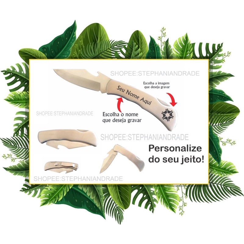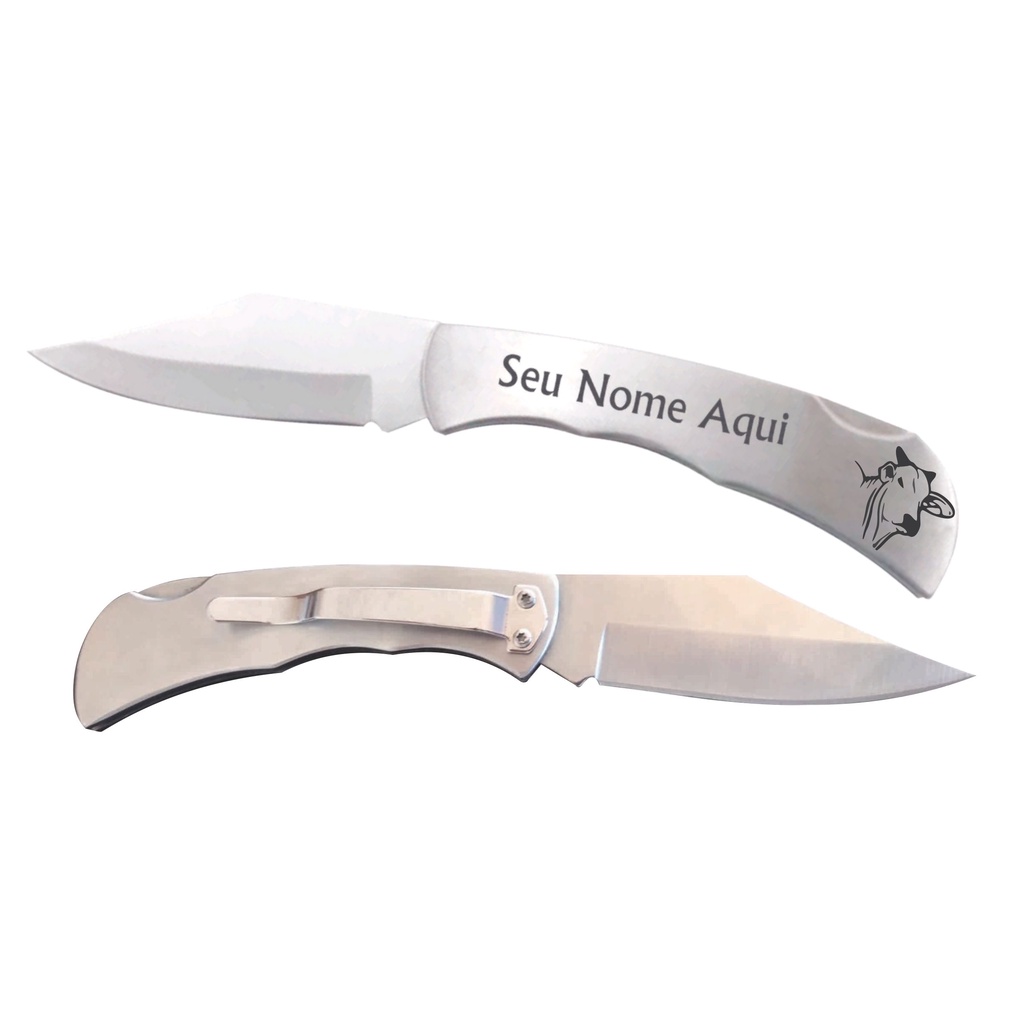 Canivete Barretão de bolso todo em Inox gravado seu nome e imagem