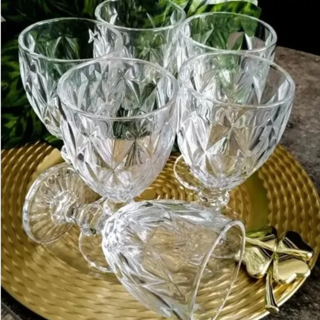 Jogo 6 Taças de Vidro Diamond para Vinho Suco Água 260ml