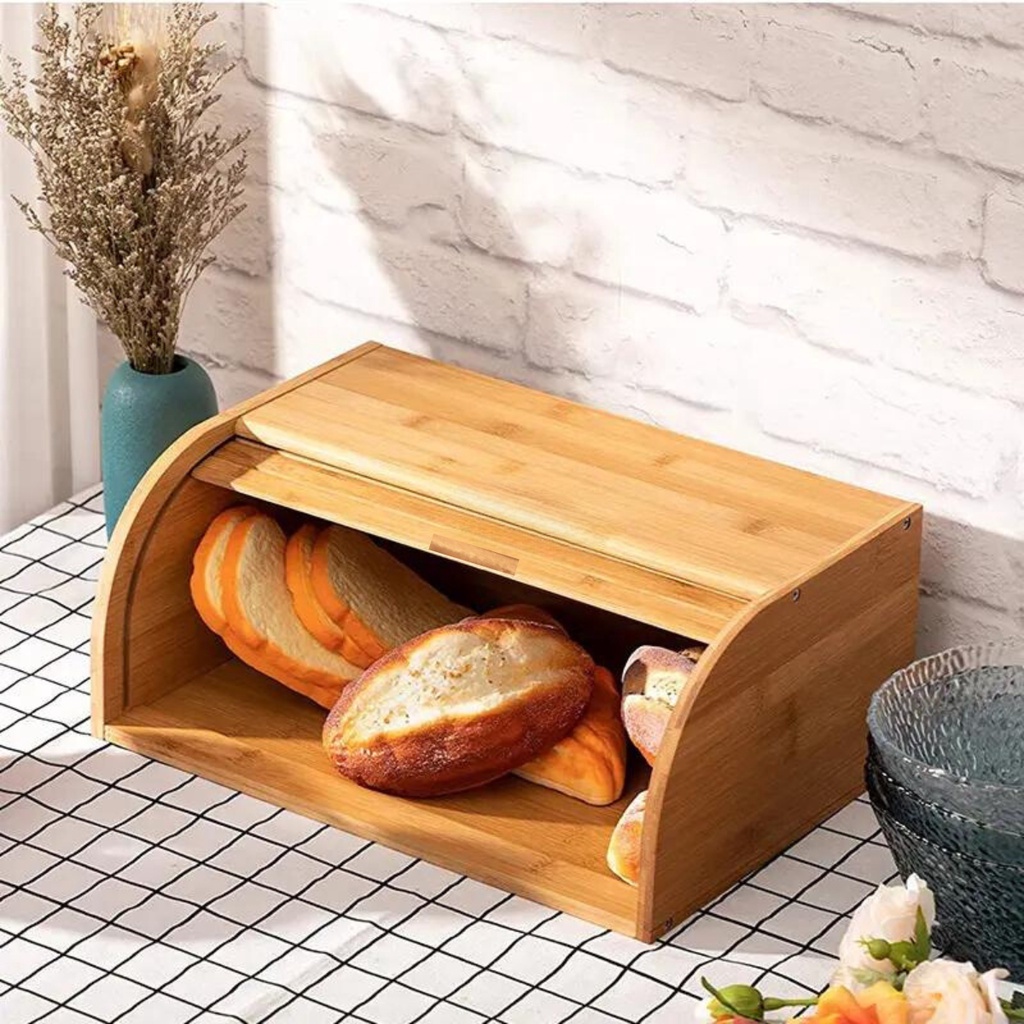 Porta Pão em Bambu Com Tampa Guarda Pães Torrada Bolo