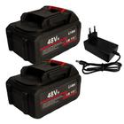 Kit 2 Baterias Recarregável 48V Fonte Carregador 21V Alta Performance para Ferramentas Portáteis com Encaixe Universal e Carregamento Rápido