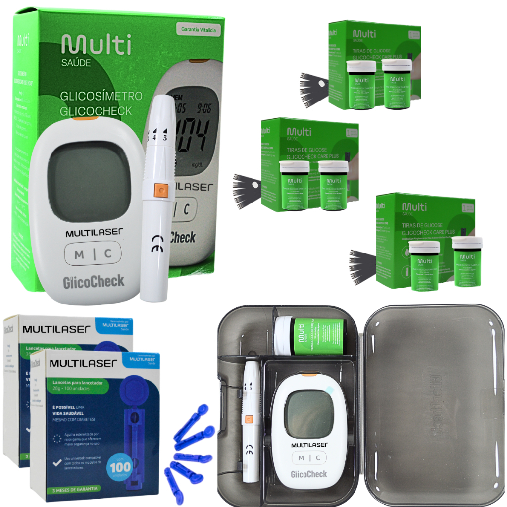 Kit Medidor Glicose Multilaser Aparelho Monitor Glicemia 100 Tiras Fitas 150 Lancetas Diabetes