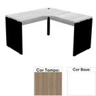 Mesa de Escritório em L Pé Painel PE25 em MDP 145 x 145 x 60 cm Cor Noce Naturalle e Base Branca