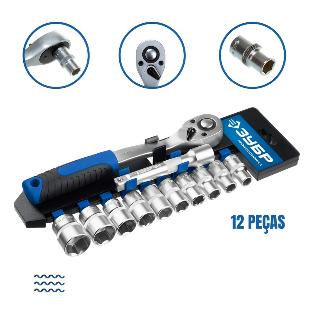 Jogo De Soquete Sextavado 1/2 Com Catraca 12 Pçs C/ Extensão