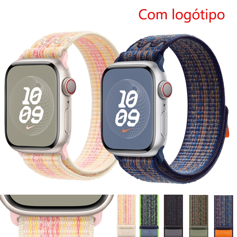Com Logotipo Bracelete De Nylon Esportivo Para pulseira De Relógio Apple 45mm 41mm 44mm 49mm 40mm 42mm 44 mm iwatch Série 9 8 se 7 6 5 4 ultra Mulheres Homens Smartwatch Acessórios