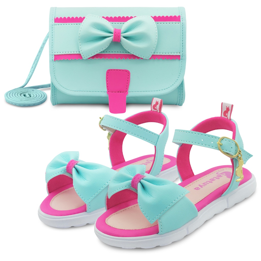 Kit Sandália Infantil Com Laço BB&Kids Com Bolsa Summer Fivela Menina Azul/Pink