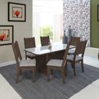 Conjunto de sala de jantar fidelita miami 150 cm com 6 cadeiras noce off-white assento linho