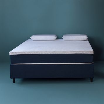 Cama Box King com Colchão Mola Ensacada Guldi Firme e 2 Travesseiros Guldi Nasa Viscoelástico Azul e Branca