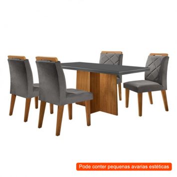 [OUTLET] Conjunto de Mesa de Jantar Retangular com Tampo de Vidro Ane e 4 Cadeiras Bélgica Veludo Grafite e I