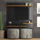 Painel Home Suspenso Para TV Até 50 Polegadas 1 Prateleira Sala de Estar Preto e Marrom Madeira