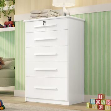 Comoda Infantil Lara 5 Gav Com Chave Branco