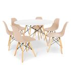 Conjunto Mesa de Jantar Talia Amadeirada Branca 120cm com 6 Cadeiras Eames Eiffel - Nude